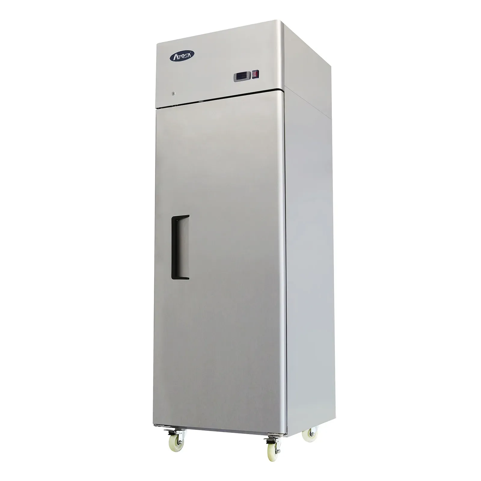Ignite culinary passion with the Atosa USA MBF8001GR Freezer, Reach-In. This top-of-the-line freezer is designed to meet the demanding needs of commercial restaurants. With its spacious one-section design, measuring 28-7/10"W x 31-7/10"D x 81-3/10"H, and a generous 21.4 cu ft. capacity, it provides ample storage space for all your frozen ingredients and prepared dishes. The locking hinged solid door ensures the security of your valuable inventory. The digital temperature control allows you to easily adjust the temperature between -8° to 0°F, ensuring optimal food preservation. The three adjustable shelves provide flexibility in organizing your items, while the interior LED lighting illuminates the contents for easy visibility. The stainless steel interior and exterior, along with the galvanized steel back, guarantee durability and easy cleaning. Equipped with 4" casters, this freezer is easy to move and position. It also features automatic evaporation and electric defrost for hassle-free maintenance. With its ENERGY STAR® certification and use of R290 Hydrocarbon refrigerant, this freezer is not only efficient but also environmentally friendly. Trust Atosa USA to deliver exceptional quality and performance for your commercial kitchen needs.