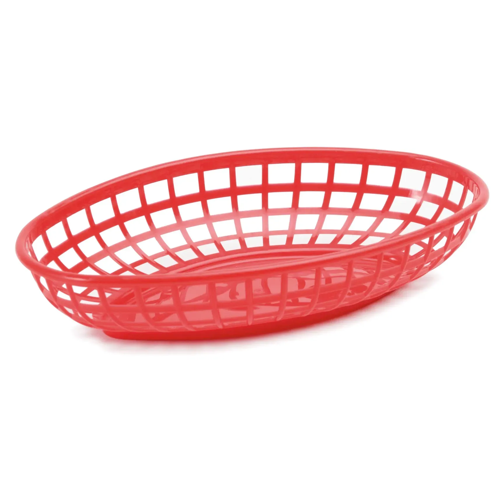 Improve workflow with Royal Industries DIN OVB1005 Fast Food Basket. Designed for commercial restaurant use, this oval-shaped food basket measures 9-3/8" x 6" x 2-1/8" and comes in a vibrant red color. Made of dishwasher-safe plastic, it is durable and easy to clean, ensuring efficient service and maintaining hygiene standards. The basket is sold by the case, with 3 dozen minimum order, making it ideal for high-volume establishments. Royal Industries, a trusted vendor in the industry, guarantees the quality and authenticity of this product. The DIN OVB1005 Fast Food Basket is not only practical but also safe, as it is free from harmful chemicals like Bisphenol A (BPA). Enhance your restaurant's efficiency and presentation with this versatile and reliable food basket. Order now and experience the convenience it brings to your establishment.