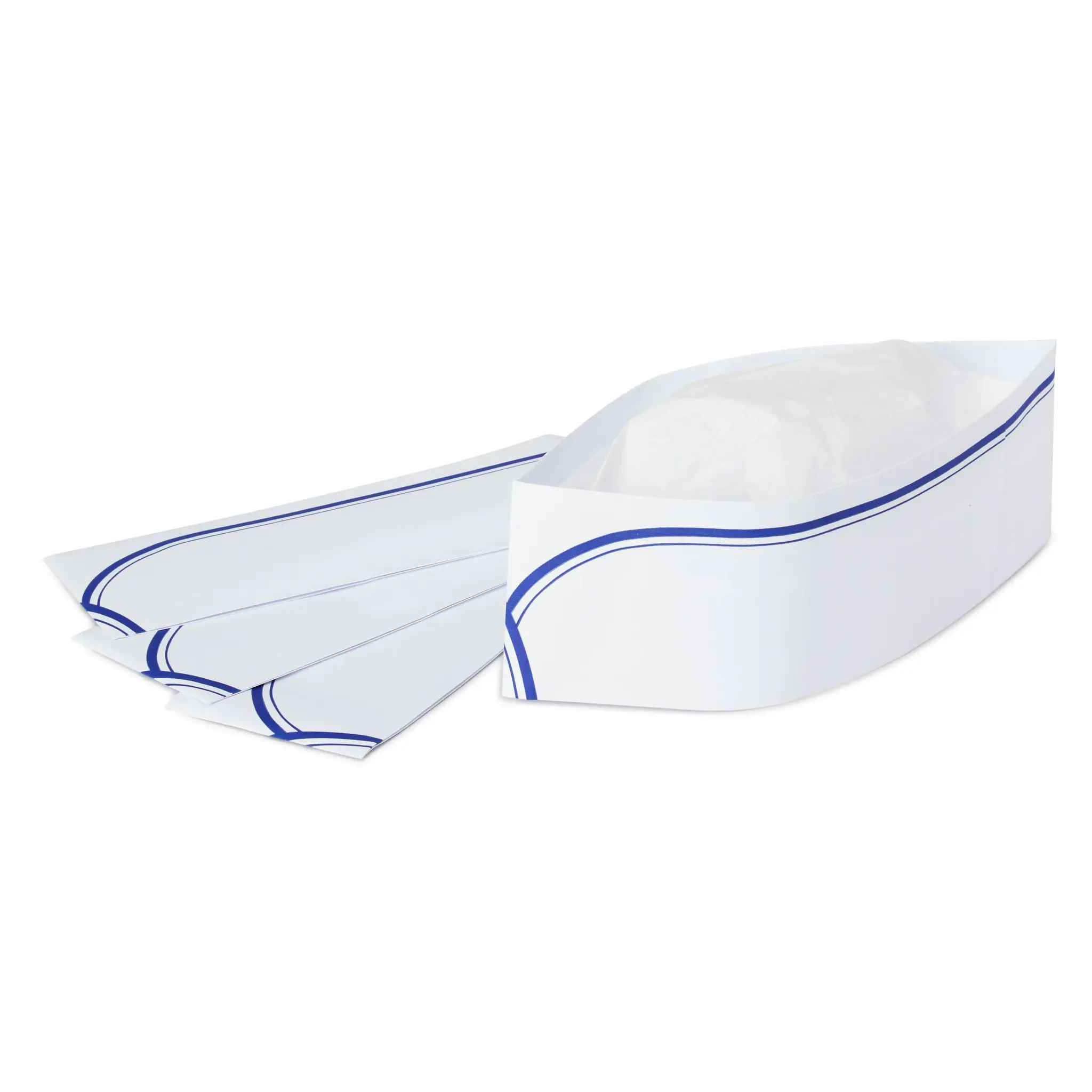 Facilitate efficient operations with Royal Industries, PPR OS BLU, Disposable Chef's Hat. This disposable overseas cap is designed to meet the needs of commercial restaurants, ensuring a hygienic and professional kitchen environment. Each case contains 10 boxes, with 100 blue paper crowns per box, providing ample supply for your staff. The hat is made of high-quality materials, guaranteeing durability and comfort throughout the day. Its disposable nature allows for easy cleanup, saving time and effort in busy kitchen settings. The Royal Industries Disposable Chef's Hat is packed by Royal Industries, a trusted name in the industry, ensuring authenticity and reliability. With its adjustable design, this hat fits securely on any head size, providing a comfortable and secure fit for all staff members. Enhance your restaurant's image and maintain a clean and professional appearance with this essential kitchen accessory.