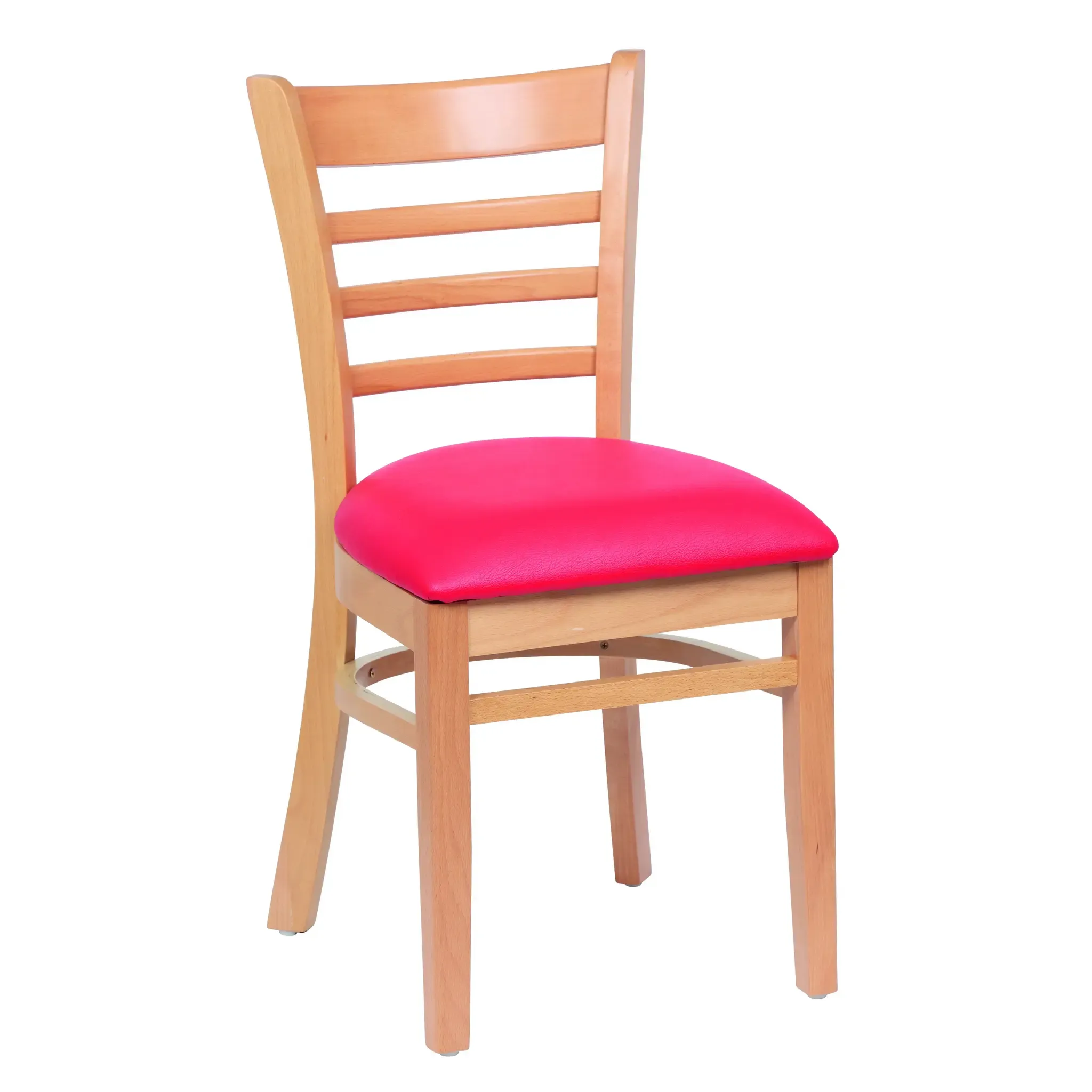 Streamline restaurant operations seamlessly with the Royal Industries, ROY 8001 N RED Chair. This indoor side chair is designed to enhance the dining experience for both customers and staff. The ladder back design provides excellent support and comfort, while the upholstered red vinyl cushion seat adds a touch of elegance. Made from European Beachwood with a natural finish, this chair is not only durable but also visually appealing. The chair comes in a case of 2, allowing you to easily furnish your restaurant with multiple seating options. With a compact size of 17"L x 16-1/2"W x 33-1/2"H, this chair is perfect for maximizing space in a commercial restaurant setting. Trust Royal Industries to deliver high-quality furniture that meets your restaurant's needs.