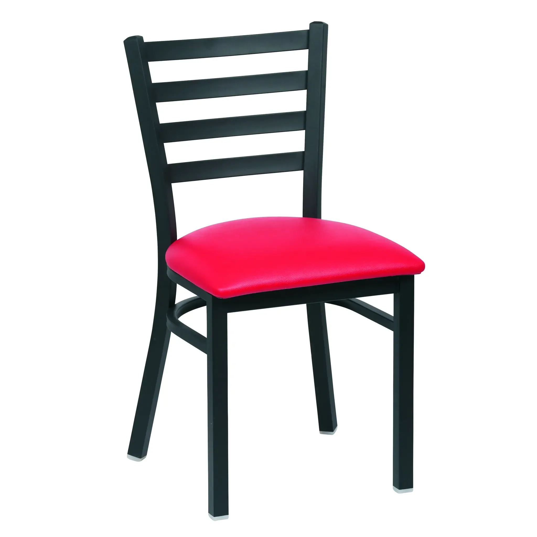 Enhance management efficiency with the Royal Industries, ROY 9001 RED Chair. This side chair is designed for indoor use in commercial restaurants, offering both comfort and durability. The ladder back design provides excellent support, while the upholstered red vinyl cushion seat adds a touch of style. The metal frame and matte black finish ensure long-lasting performance, while the nylon foot prevents scratches on the floor. Sold by the case, with a minimum order of 2 chairs, this product is perfect for outfitting your restaurant with high-quality seating. The Royal Industries Chair is packed by the vendor and comes with a warning about potential chemical exposure. With its sleek design and practical features, this chair is a must-have for any restaurant looking to enhance its management efficiency and create a comfortable dining experience for customers.