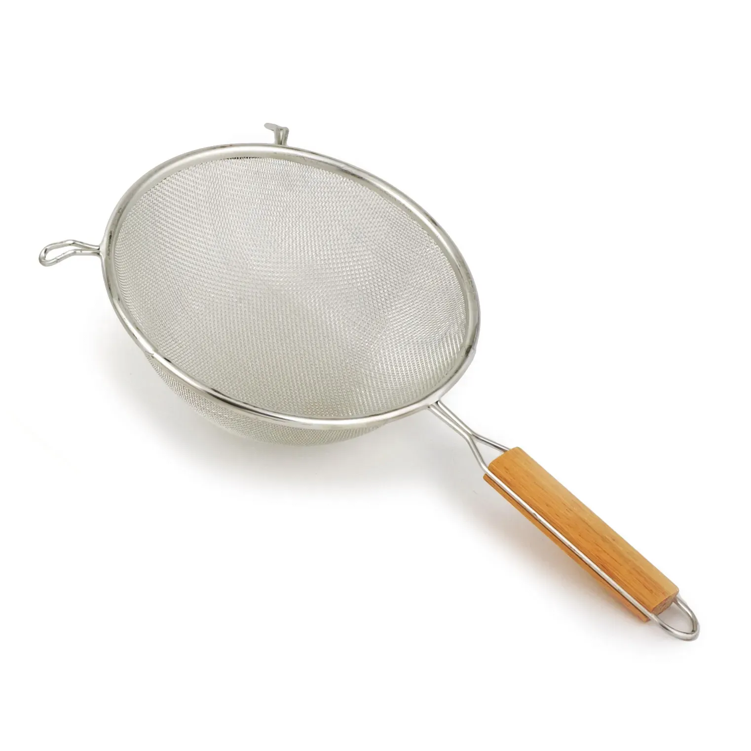 Enhance overall efficiency with the Royal Industries, ROY DMS 6, Mesh Strainer. This high-quality strainer is designed to meet the demands of commercial restaurant use. With a 6" diameter bowl and double tinned coarse mesh wire, it effectively strains liquids and solids, ensuring a smooth and consistent texture in your dishes. The strainer comes with pan hooks and a wood handle, allowing for easy and convenient use. Its durable construction ensures long-lasting performance, even in busy kitchen environments. The Royal Industries Mesh Strainer is packed by Royal Industries, a trusted name in the industry, and is sold in a case pack of 1. This strainer is not only practical but also safe, as it is BPA-free. Upgrade your kitchen tools with this reliable and efficient mesh strainer.