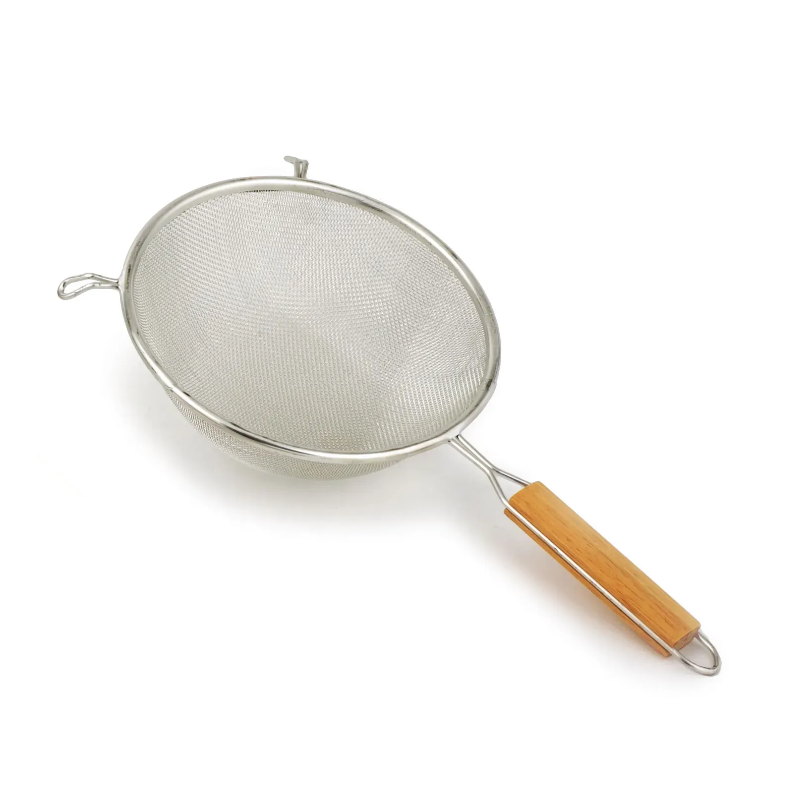 Enhance restaurant functionality with the Royal Industries, ROY DMS 8 FINE, Mesh Strainer. This high-quality strainer is designed to meet the demands of a commercial kitchen. With its 8" diameter bowl and double tinned fine mesh wire, it effectively strains liquids and sifts dry ingredients, ensuring a smooth and consistent texture in your culinary creations. The strainer comes with pan hooks and a wood handle, allowing for easy and convenient use. Its durable construction ensures long-lasting performance, making it a reliable tool in any busy restaurant. Additionally, this strainer is packed by Royal Industries, a trusted name in the industry, guaranteeing its authenticity and quality. Perfect for straining sauces, soups, and stocks, the Royal Industries, ROY DMS 8 FINE, Mesh Strainer is a must-have for any commercial kitchen.