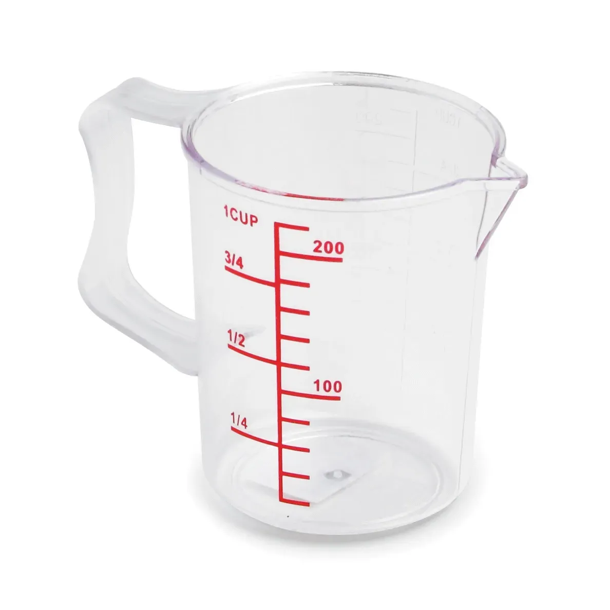 Enhance restaurant functionality with the Royal Industries, ROY MC 01 Measuring Cups. These measuring cups are a must-have tool for any commercial kitchen. Made from durable polycarbonate, they are built to withstand the demands of a busy restaurant environment. The graduated markings on the cups allow for precise measurements, ensuring accurate recipes every time. With a liquid measure of 1 cup, these measuring cups are perfect for both small and large quantities. The NSF certification guarantees their safety and quality, giving you peace of mind. Additionally, the cups come with a warning label regarding the presence of Bisphenol A (BPA), ensuring transparency and compliance with California regulations. Packed by Royal Industries, this case includes 48 measuring cups, providing ample supply for your restaurant's needs. Upgrade your kitchen with the Royal Industries, ROY MC 01 Measuring Cups and experience the convenience and reliability they offer.