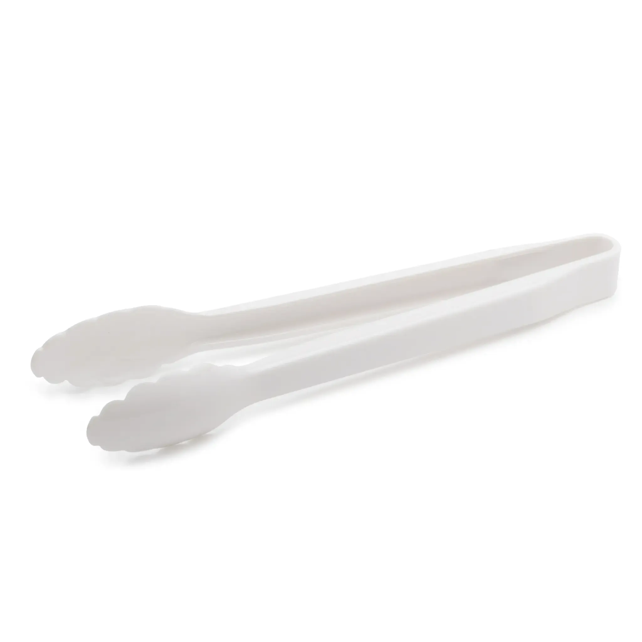 The tongs feature a sleek white design that adds a touch of elegance to your food presentation. Their ergonomic handle offers a comfortable grip, allowing your staff to handle food with precision and ease.