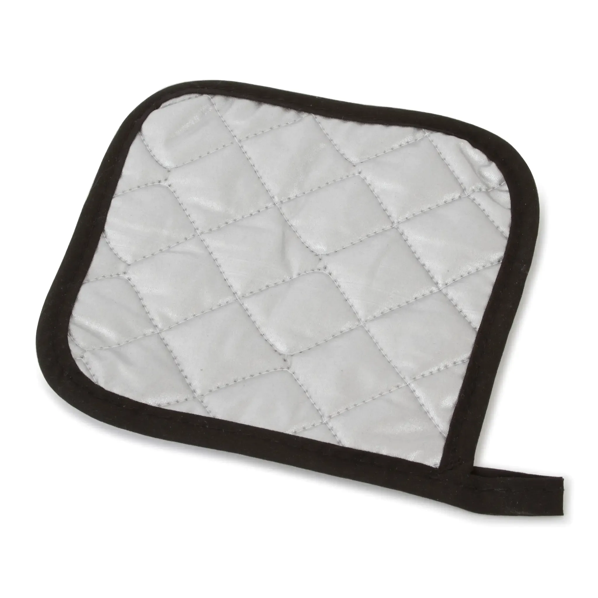 Facilitate smooth operations with the Royal Industries, RPH 7, Pot Holder. This pot holder is designed to meet the demands of a commercial restaurant setting, ensuring safety and efficiency in the kitchen. With its silver coated fire retardant 12 oz. quilted batting and poly/cotton twill black trim, this pot holder offers excellent heat resistance up to 400F. It provides a secure grip on hot pots and pans, protecting your hands and preventing accidents. The hand wash only feature ensures easy maintenance and longevity. The Royal Industries pot holder is packed by the vendor and comes in a case with 1 unit. Its compact size of 7" x 7" makes it convenient to store and use. Trust in the quality and reliability of Royal Industries to enhance your restaurant's operations.