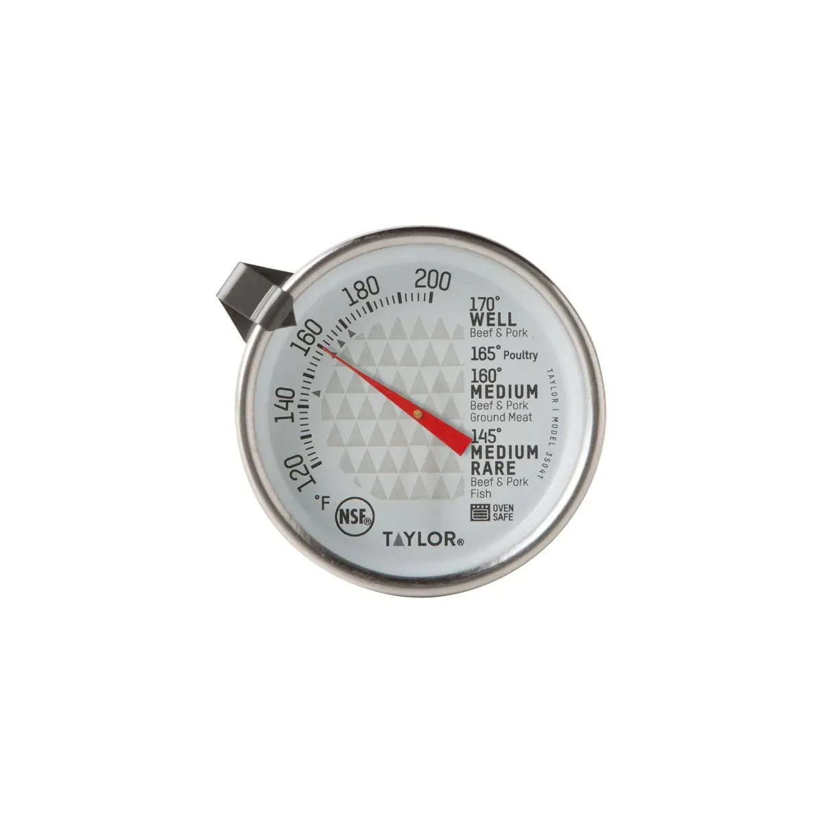 Streamline precision with the Taylor Precision, 3504, Meat Thermometer. Designed specifically for commercial restaurant use, this meat thermometer ensures accurate and reliable temperature readings every time. With a 2" dial and a 4-1/2" stainless steel stem, it provides a temperature range of 120 to 210F, making it perfect for monitoring the doneness of various meats. The adjustable temperature indicator and roasting scale with USDA guidelines printed on the dial allow for easy and precise temperature control, ensuring that your dishes are cooked to perfection. This NSF-approved thermometer comes in a case pack of 6, making it ideal for busy restaurant kitchens. Trust Taylor Precision for all your temperature monitoring needs and elevate your culinary creations to new heights of perfection.