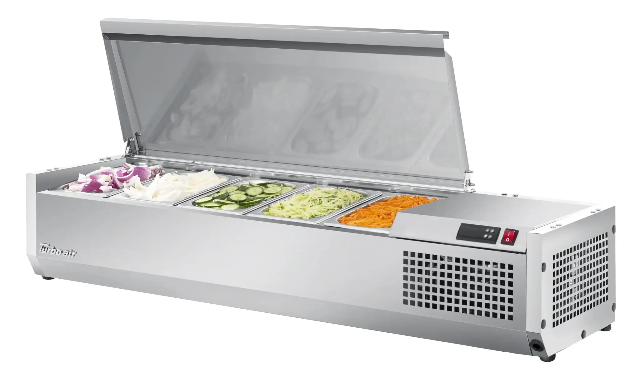 Introducing the Turbo Air CTST-1200-N Counter Top Salad Table, designed to simplify restaurant operations. This high-quality salad table from Turbo Air is a must-have for any commercial restaurant. With its sleek design and compact size, it fits perfectly on any countertop, saving valuable space in your kitchen. The CTST-1200-N features a capacity of 7 pans, allowing you to store and display a variety of fresh ingredients for salads, sandwiches, and more. Its powerful compressor ensures optimal cooling performance, keeping your ingredients fresh and ready to serve. The Turbo Air CTST-1200-N operates at a voltage of 115/60/1 and comes with a NEMVA 5-15P plug type, making it easy to install and use. With its durable construction and energy-efficient design, this counter top salad table is a reliable and cost-effective solution for your restaurant. Simplify your operations and elevate your salad game with the Turbo Air CTST-1200-N Counter Top Salad Table.