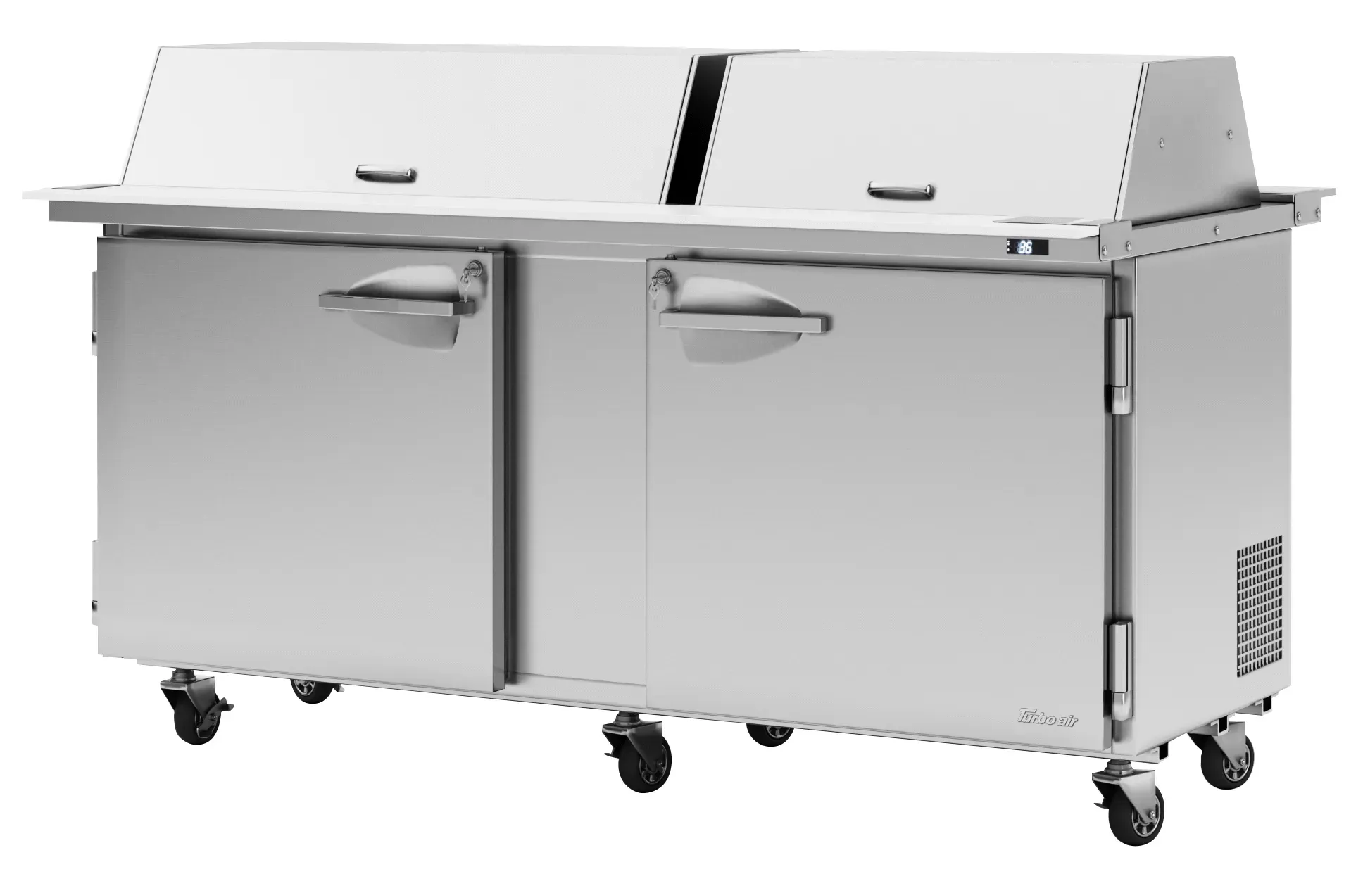 Enhance the heart of your restaurant with the Turbo Air PST-72-30-N-DS Prep Table. This high-quality prep table from Turbo Air is designed to meet the demands of a busy commercial kitchen. With its spacious dimensions of 72-5/8 x 46-1/2 x 40, this prep table provides ample space for food preparation and storage. The unit operates on a voltage of 115/60/1 and has a plug type of NEMA 5-15P, making it easy to install and use. The Turbo Air PST-72-30-N-DS is equipped with a powerful refrigeration system that uses environmentally friendly refrigerant 290. This ensures that your ingredients stay fresh and at the optimal temperature. With its durable construction and reliable performance, this prep table is a must-have for any commercial restaurant. Invest in the Turbo Air PST-72-30-N-DS Prep Table and take your restaurant's efficiency and productivity to the next level.