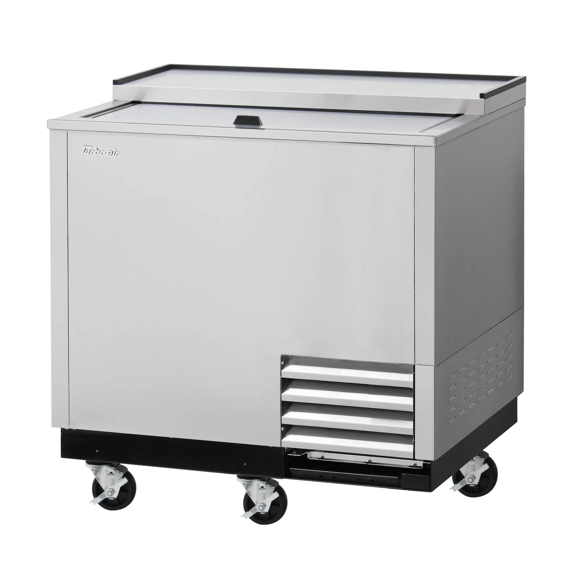 Transform your food service with the Turbo Air TBC-36SD-GF-N Glass Froster. This super deluxe glass chiller and froster is designed to meet the needs of commercial restaurants. With a spacious 36.75" width and 9.74 cu.ft. capacity, it provides ample storage space for chilling and frosting glasses. The self-cleaning condenser ensures optimal performance and reduces maintenance requirements. The unit features a side mount design and is self-contained, making it easy to install and operate. It comes with five PE coated durable shelves and a sliding lid for convenient access. The stainless steel countertop and lid, as well as the stainless steel exterior, ensure durability and a sleek appearance. The stainless steel interior walls and floor, along with the galvanized steel interior top, provide easy cleaning and hygiene. Equipped with R290 Hydrocarbon refrigerant and a 1/3 HP compressor, this glass froster is energy-efficient and environmentally friendly. The unit is also equipped with five casters for easy mobility. Trust Turbo Air, a reputable vendor in the industry, to deliver high-quality and reliable products. Upgrade your restaurant's beverage service with the Turbo Air TBC-36SD-GF-N Glass Froster.