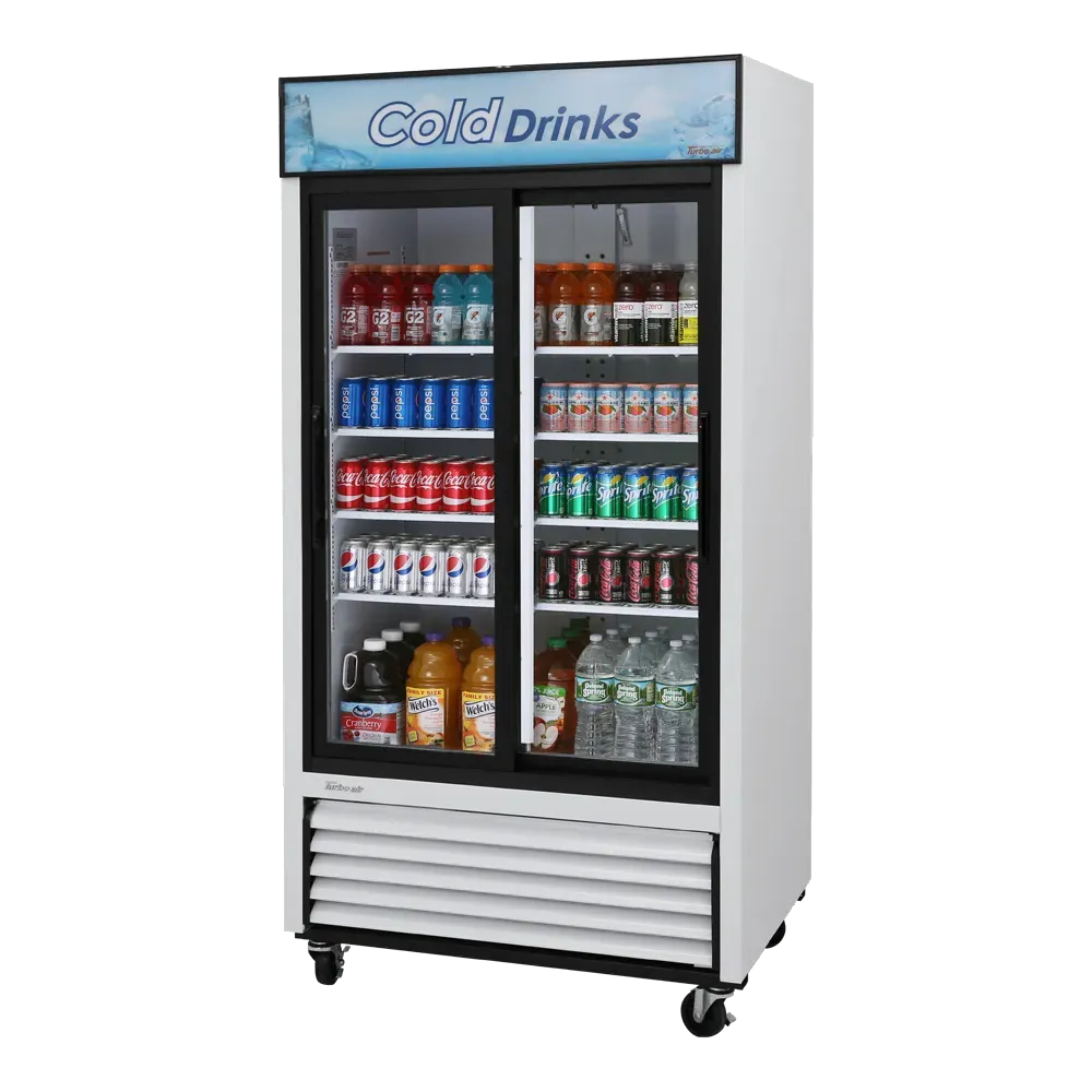 Equip your commercial kitchen with the Turbo Air TGM-35R-N Refrigerator Merchandiser. This two-section refrigerated merchandiser is perfect for showcasing your food and beverages while keeping them at the optimal temperature. With a spacious 29.27 cu. ft. capacity, this self-contained unit features two double pane Low-E self-closing sliding glass doors, allowing easy access for customers and staff. The LED interior and canopy lighting not only provide excellent visibility but also create an inviting atmosphere. The energy conserving fan control and hot gas condensate system ensure efficient operation, while the eight adjustable PE coated wire shelves offer flexibility in organizing your products. The white cabinet with black trim adds a sleek and modern touch to your establishment. With a bottom mount compressor and R290 Hydrocarbon refrigerant, this refrigerator merchandiser is not only reliable but also environmentally friendly. Trust Turbo Air to deliver high-quality refrigeration solutions for your commercial restaurant needs.