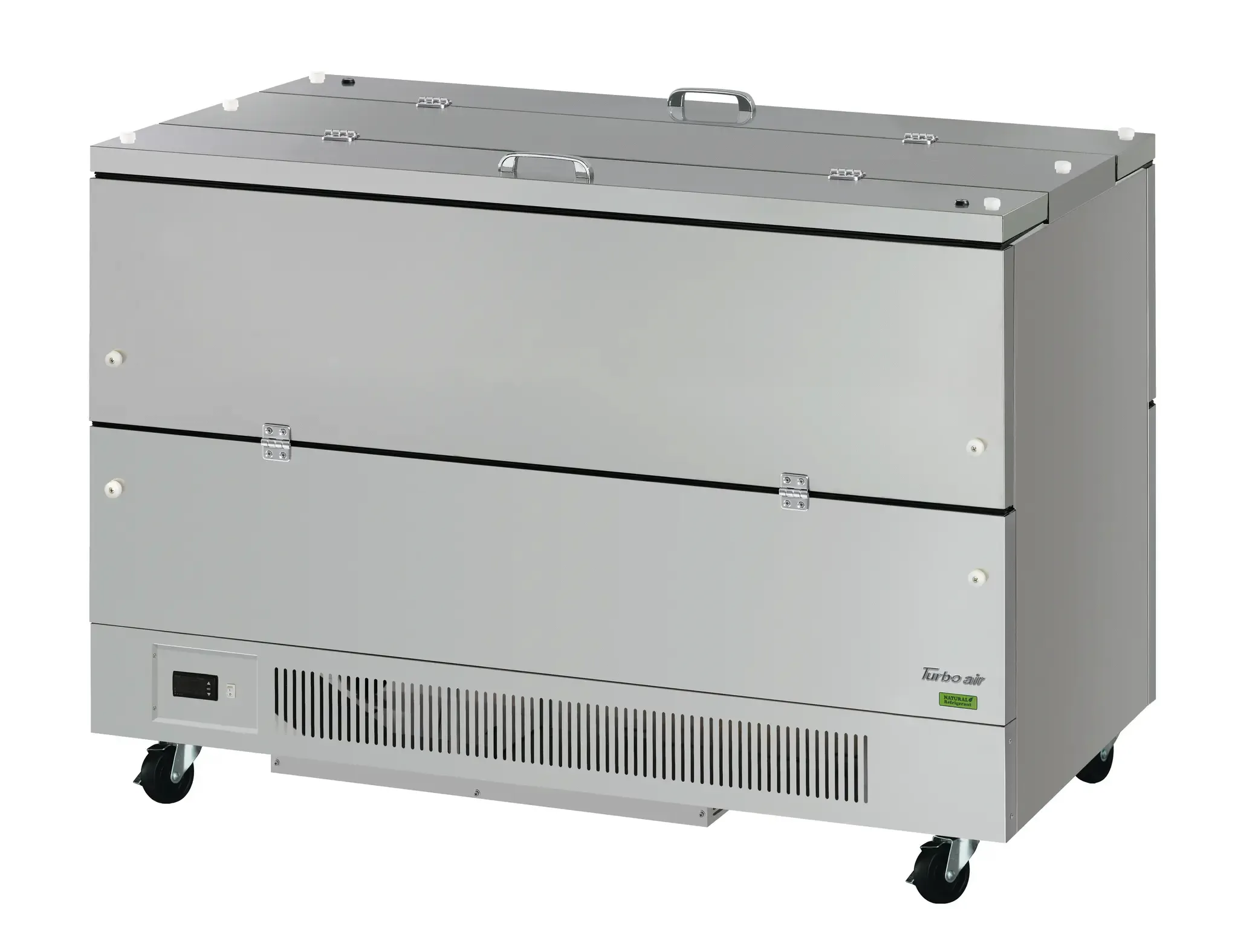 Built for maximum capacity and professional durability, the TMKC-58-2-SS-N6 holds 16 milk crates (21.98 cu. ft) and features dual-sided locking doors, flip-up lids, and cold wall refrigeration for reliable cooling. Its stainless steel interior and exterior ensure long-lasting use, while digital temperature monitoring and R600 refrigerant deliver precision and efficiency. Certified ENERGY STAR®, it’s perfect for high-demand foodservice operations.