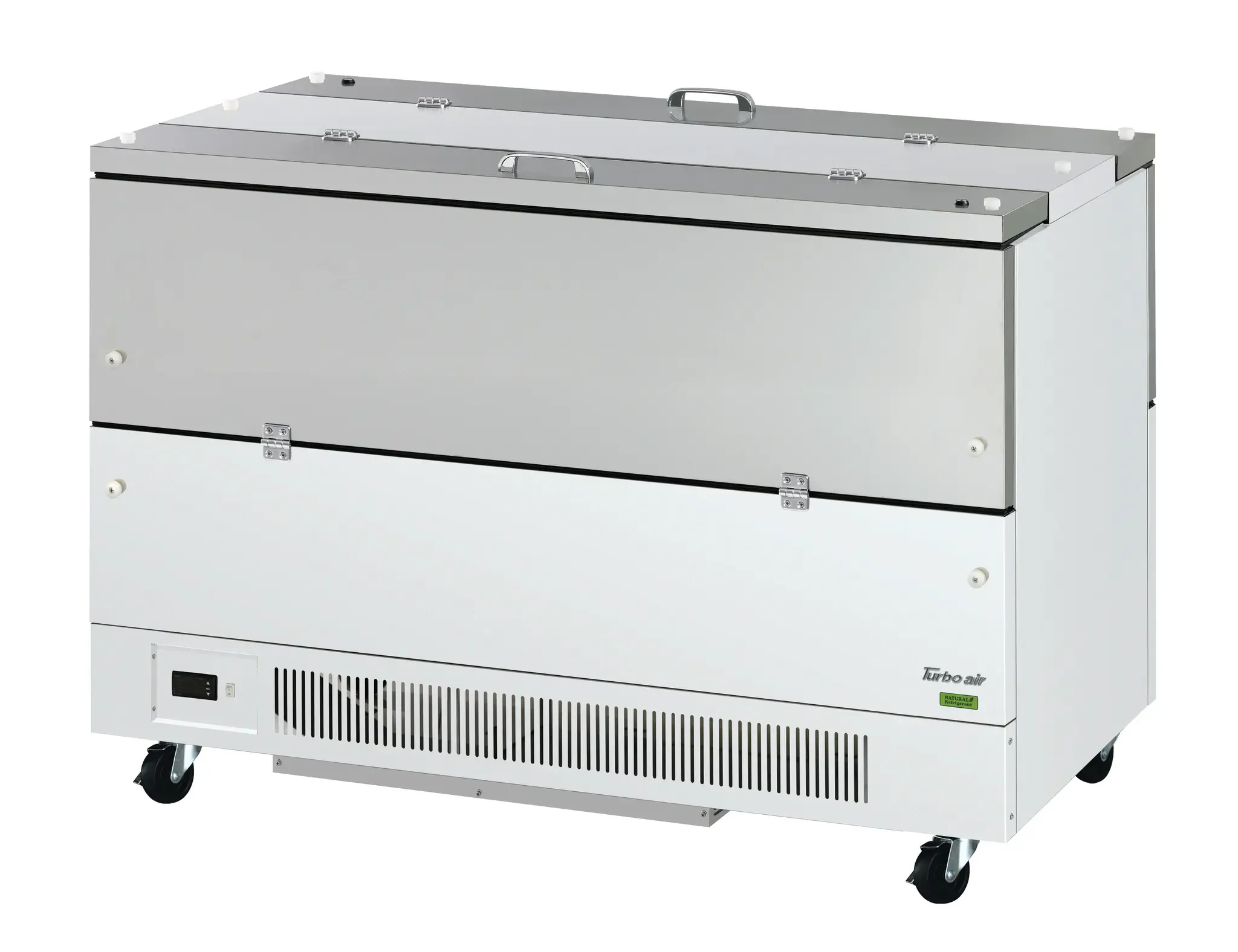 The TMKC-58-2-WS-N6 delivers high-volume cooling with 21.98 cu. ft. capacity, holding up to 16 milk crates. Designed for efficiency, it features dual-sided locking access, flip-up lids, stainless steel interior, and white exterior finish. With R600 refrigerant, digital temperature control, and ENERGY STARĀ® compliance, it provides exceptional performance and energy savings for large institutions.