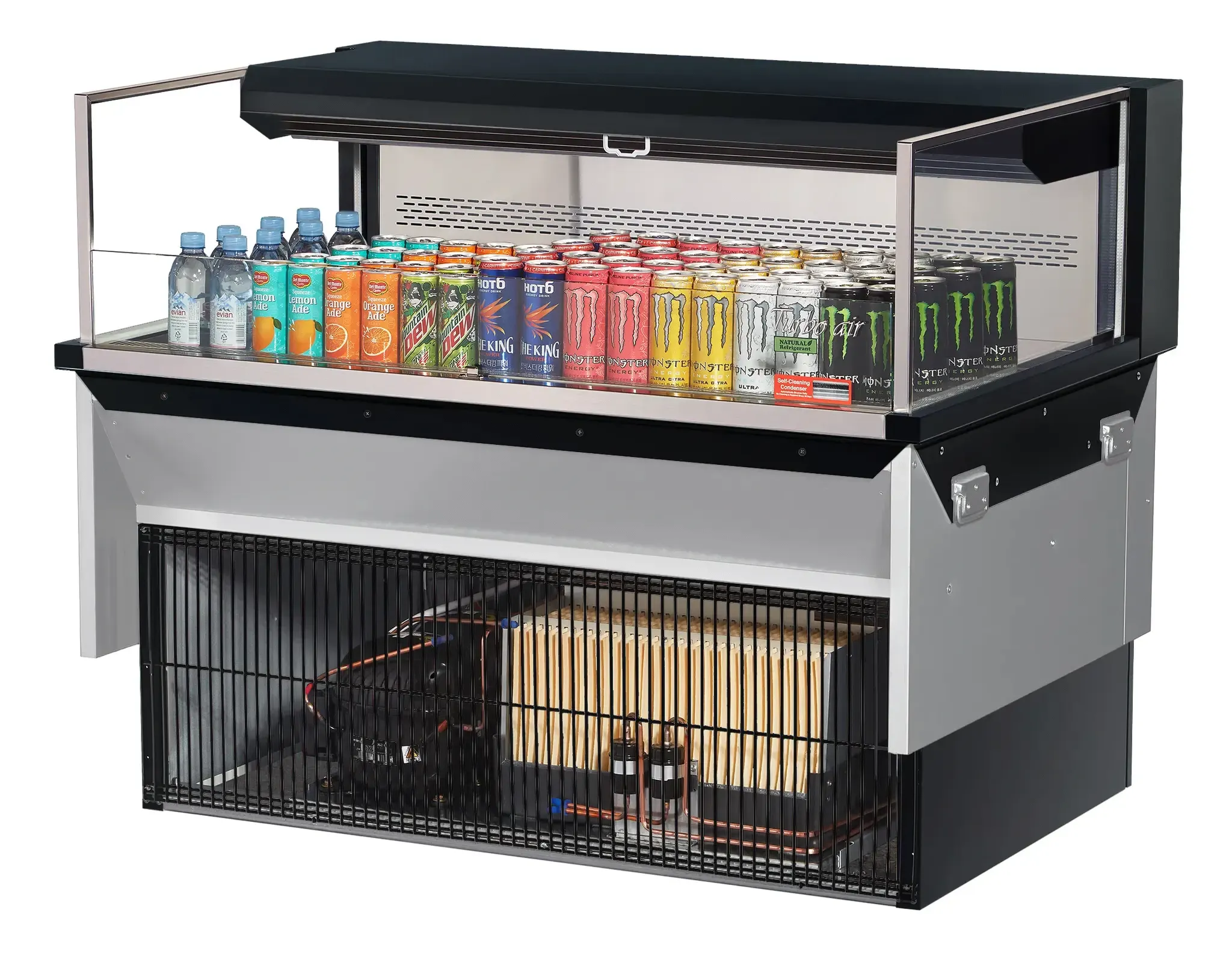 Craft culinary wonders with the Turbo Air TOM-48L-UF-W(B)-1SI-N Open Display Case. This sleek and modern display case from Turbo Air is designed to enhance impulsive sales in a commercial restaurant setting. With its low profile and glass side panels, it offers a clear view of your culinary creations, enticing customers to indulge. The self-cleaning condenser and hydrocarbon refrigerants ensure optimal performance and energy efficiency, while the stainless steel interior and solid shelf provide durability and easy cleaning. The perforated interior back wall and open top improve airflow, keeping your food fresh and delicious. Equipped with LED interior lighting and an energy-saving night curtain, this open display case is both visually appealing and cost-effective. Available in white and black, the Turbo Air TOM-48L-UF-W(B)-1SI-N is a must-have for any restaurant looking to showcase their culinary delights and boost sales.