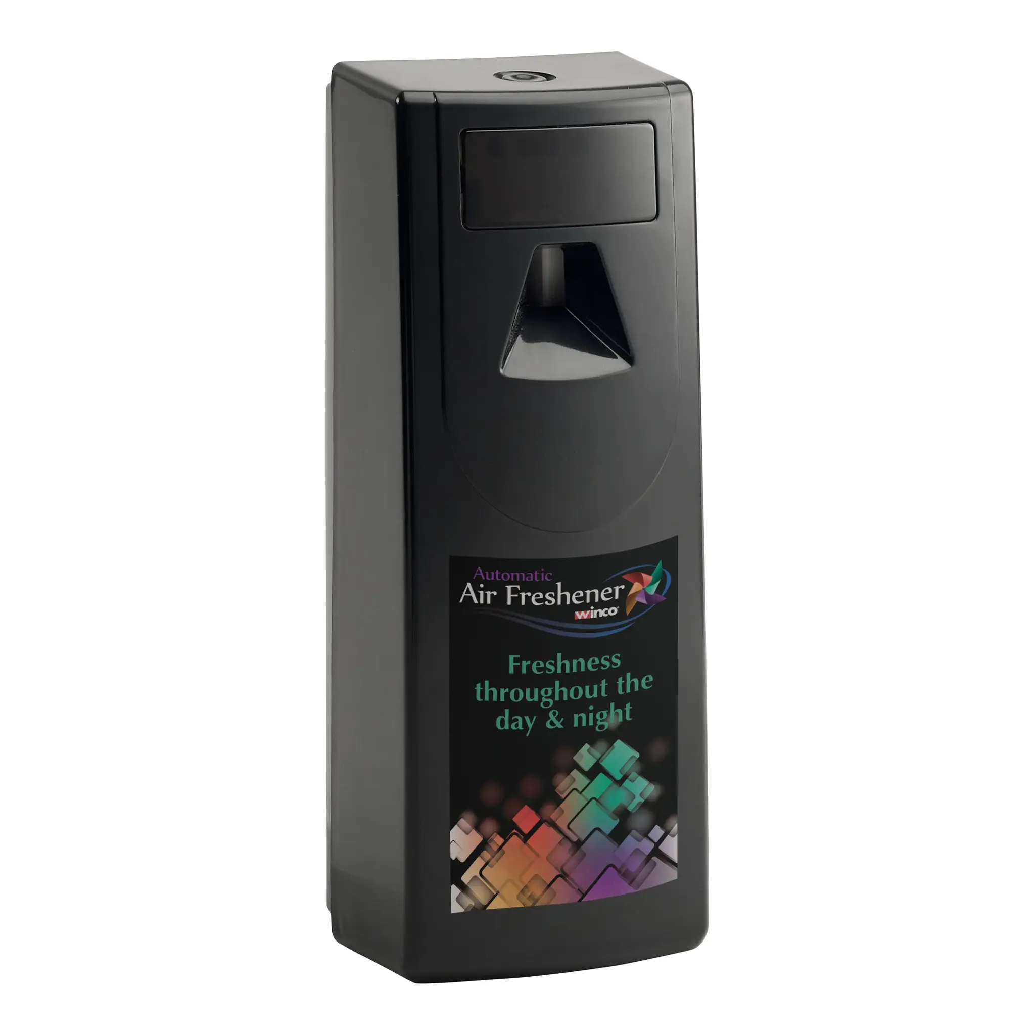 Designed to accommodate standard size 6.6 oz. refill sprays, the Winco Air Freshener AFD-1K is both practical and economical. Its black finish adds a touch of sophistication, blending effortlessly with any decor. Whether placed in the kitchen, dining area, or restrooms, this air freshener ensures a pleasant atmosphere for both staff and patrons.