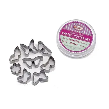Master every recipe with the Winco Cookie Cutter Set. This 8-piece set, model CST-31, is designed to bring precision and creativity to your restaurant's dessert offerings. Each cutter in the set features a diameter ranging from 1 to 2 inches, perfect for crafting delicate butterfly-shaped cookies that will delight your patrons.