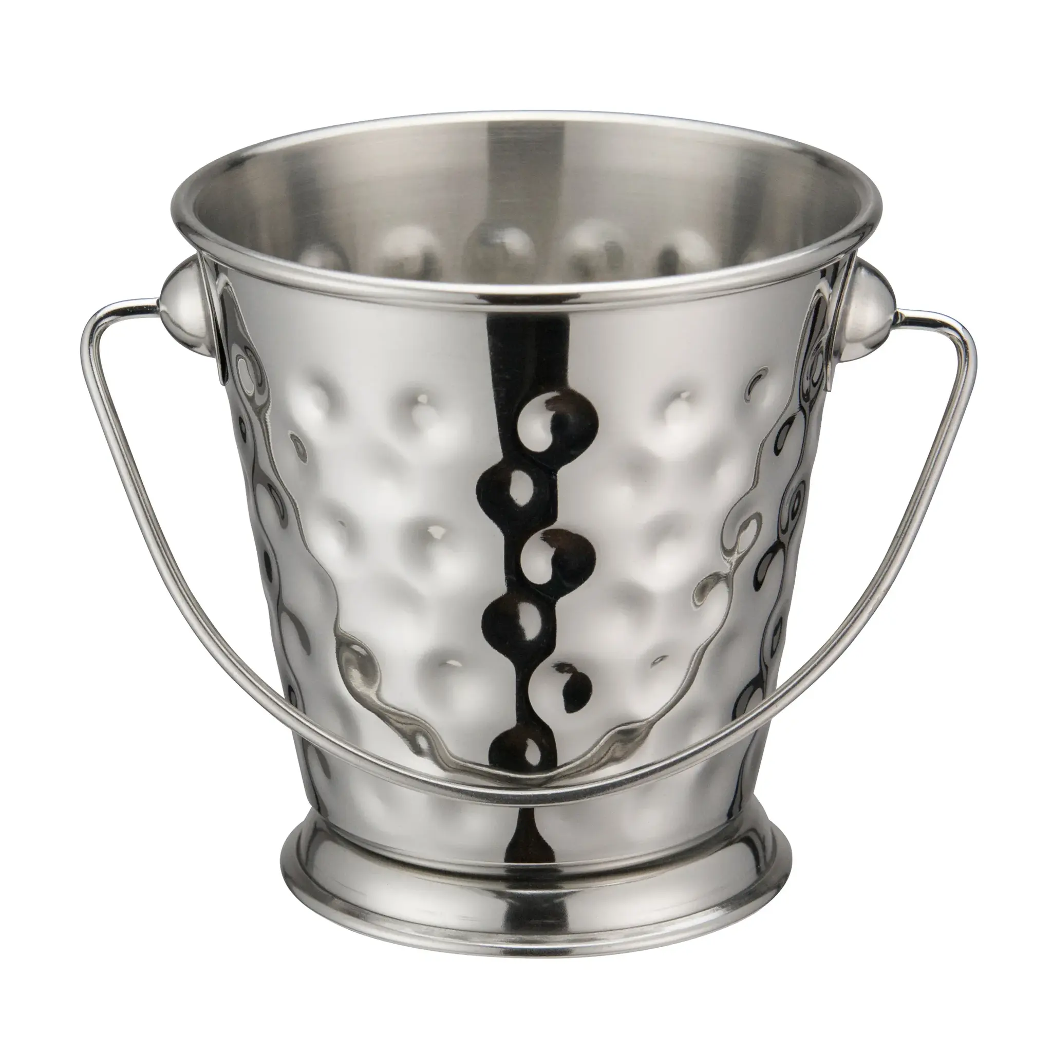 With a capacity of 10 oz., the Winco Mini Pail DDSA-102S is perfect for serving a variety of dishes, from appetizers and sides to condiments and desserts. Its compact size, measuring 3-1/2 inches in diameter and 3-5/8 inches in height, makes it a practical and space-saving addition to your kitchenware collection. The round shape and hammered finish add a touch of sophistication, making it suitable for both casual and fine dining establishments.