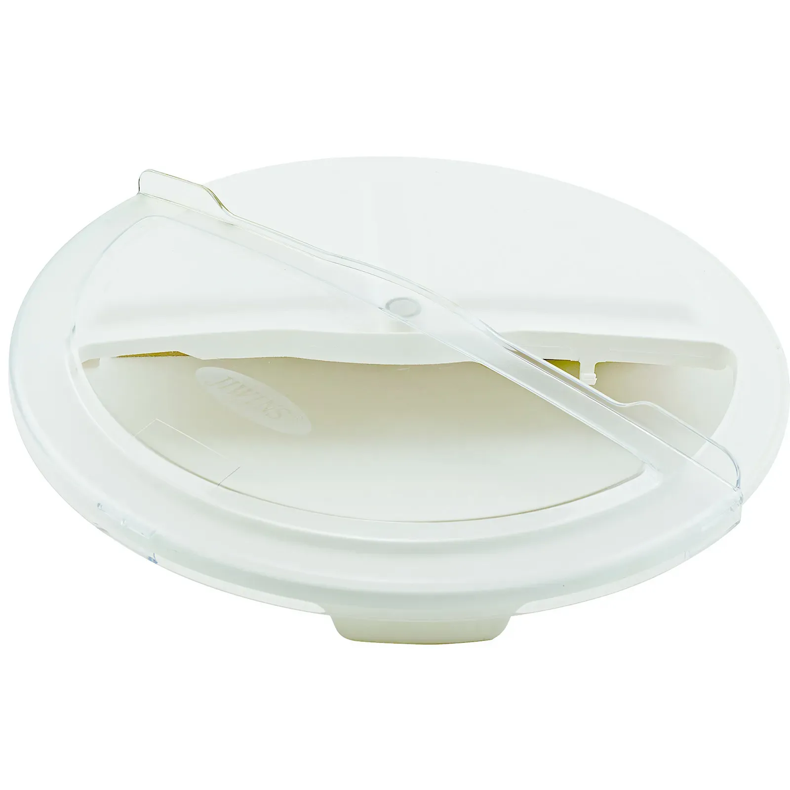 Streamline kitchen tasks with the Winco Rotating Lid for 10 Gallon Container. Designed to enhance efficiency in a bustling restaurant environment, this rotating lid is crafted from durable polycarbonate, ensuring long-lasting performance and reliability. The pristine white color not only adds a clean, professional look to your kitchen but also makes it easy to spot any spills or contaminants, maintaining the highest standards of hygiene.