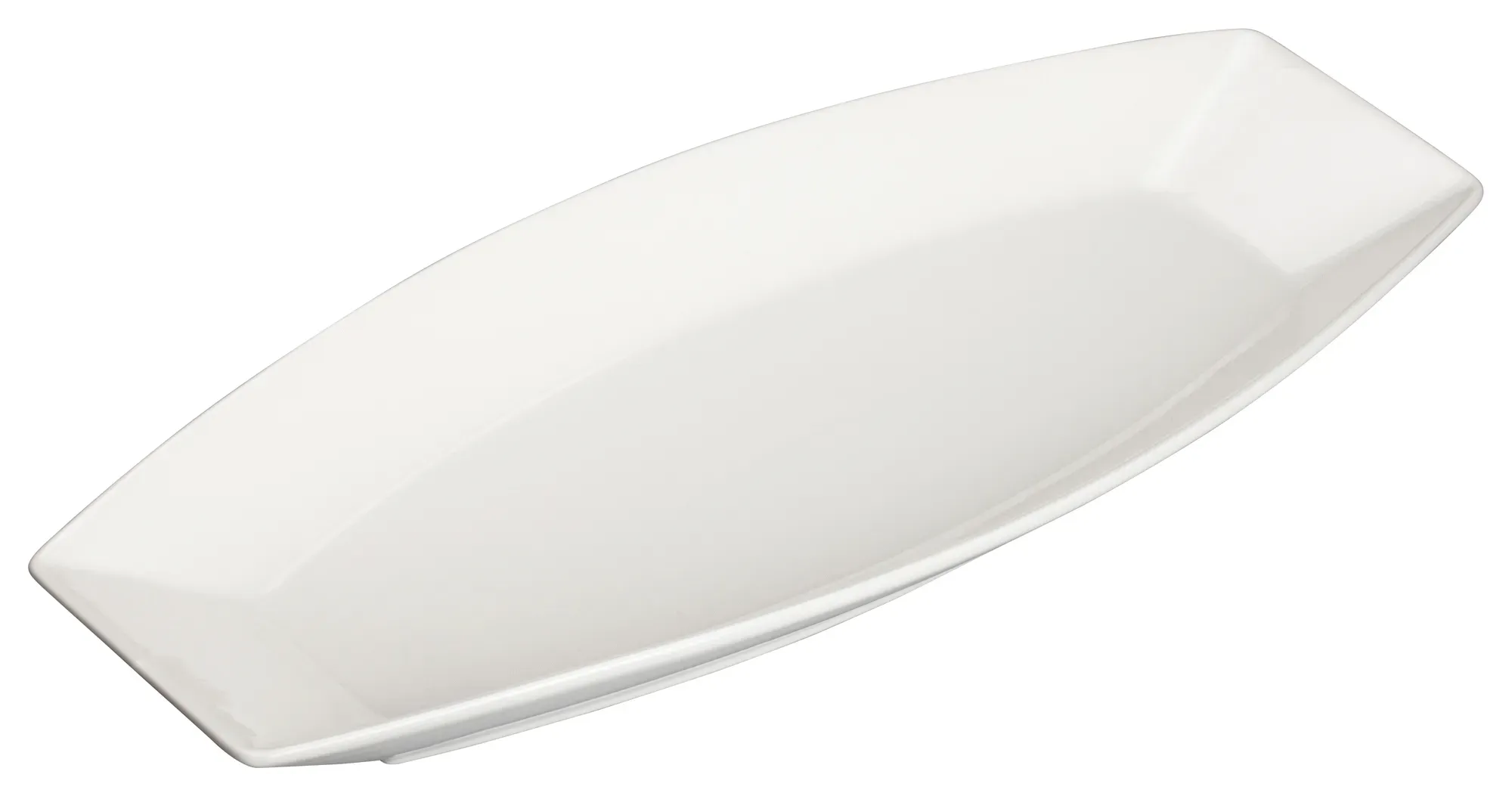 Designed for versatility with the modern restaurant in mind, the Winco Loures Ardesia Plate is an exceptional addition to any dining establishment. This plate, model WDP017-110, boasts a unique oblong shape measuring 15-1/4 x 6-1/2 inches, making it perfect for a variety of culinary presentations. Crafted from high-quality porcelain, the Loures Ardesia Plate features a bright white finish that enhances the visual appeal of any dish, from appetizers to main courses.